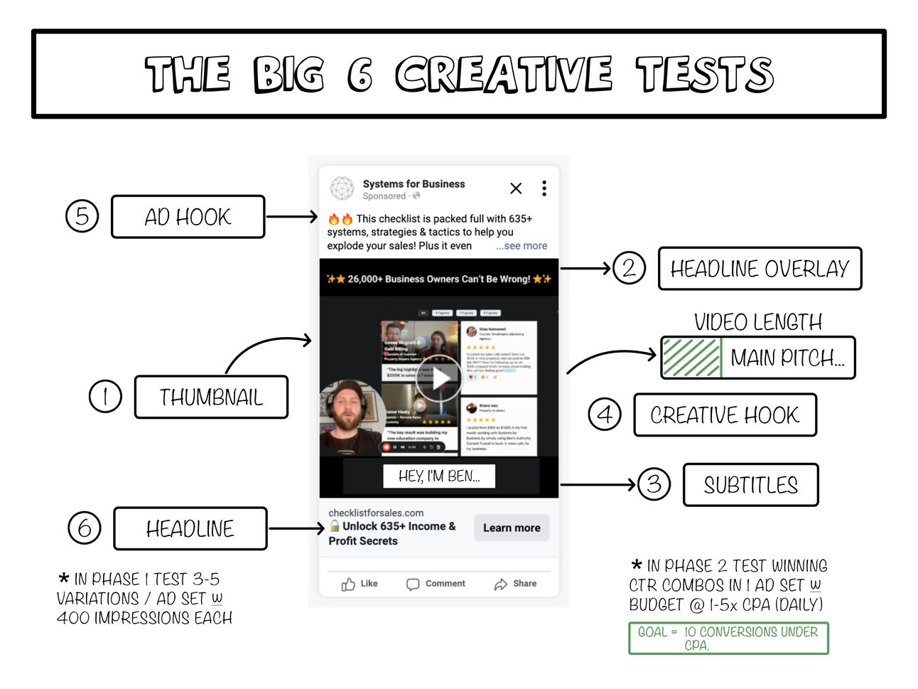 Here it’s all about testing the Big 6 Creative Elements in order to find out which ones positively shift the CTR.