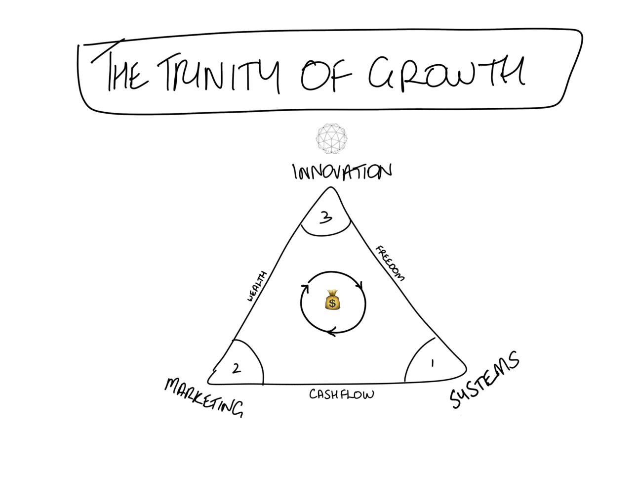 So let’s break down ‘The Trinity of Growth’ and talk about systems, marketing and innovation.