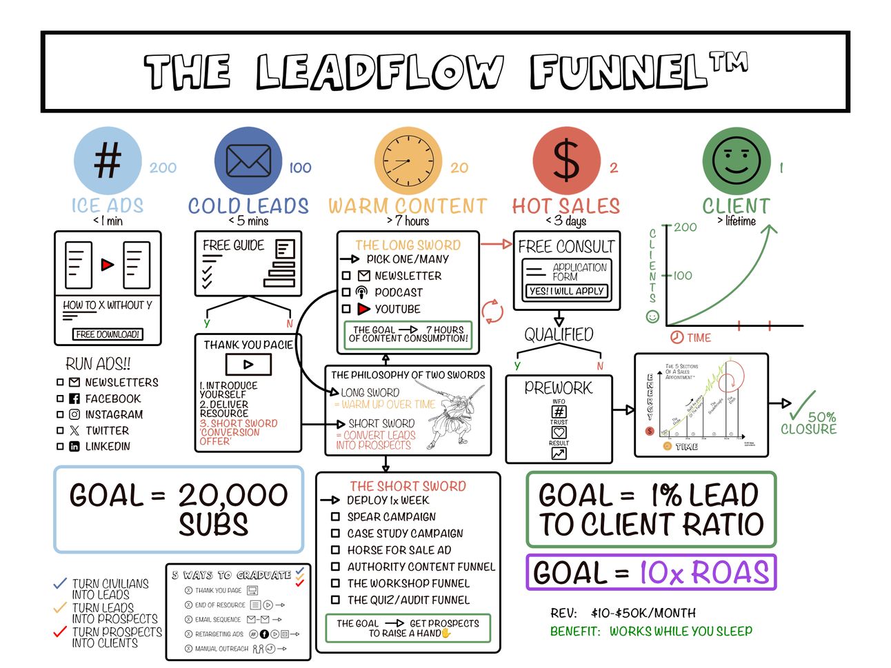 You'll come out the other side with 10-25 extra hours in your schedule every week, you'll have an improved sales system, 4 x monthly short sword strategies installed for you to drive more cashflow for your business and a completely optimised LeadFLOW marketing funnel.