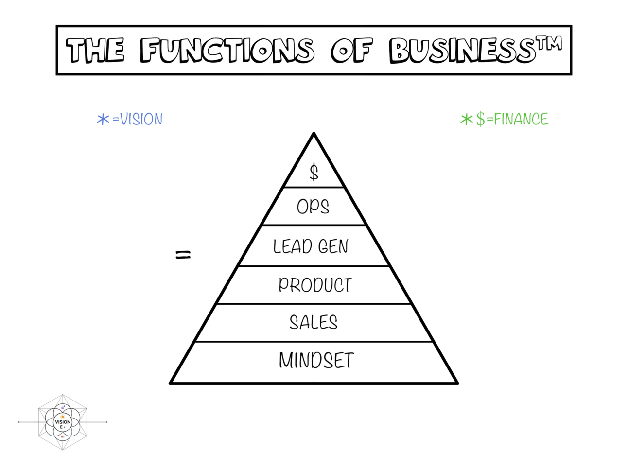 Mindset, Sales, Product, Marketing, Operations & Finance.